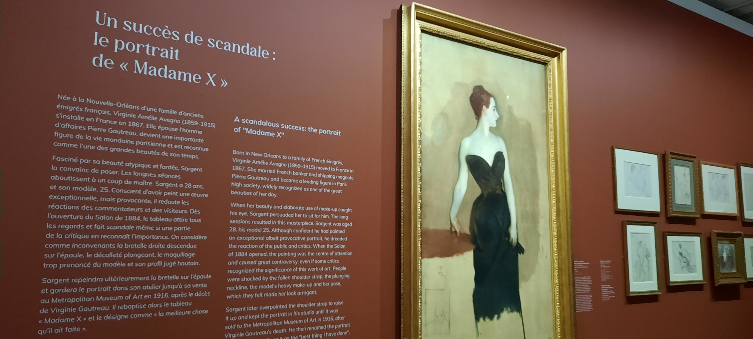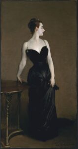 Wanneer je bekendste werk een schandaal verwekt, is dat alleen maar goed voor je bekendheid en soms ook voor de business, zal je maar denken. Sargent is 28 jaar wanneer hij zijn meesterwerk Madame X schildert. Rond 1880 ontmoet hij de Amerikaanse Virginie Amélie Avegno Gautreau, die al sinds haar acht jaar in Parijs woont. Madame is beroemd omwille van haar ‘beauté’ en haar prachtige toiletten. Sargent wil haar maar al te graag portretteren, maar zij hapt niet meteen toe. Uiteindelijk krijgt hij haar fiat. Het portret van meer dan twee meter hoog en ruime één meter breed, waarop de dame in een elegante zwarte jurk met afhangend schouderbandje en een uitdagend decolleté staat afgebeeld, is een absolute blikvanger op de Salon van 1884. Een Amerikaanse dame op die manier geportretteerd in Parijs, is niet meteen ‘bon ton’ voor de moraliteit. Andere minder positieve opmerkingen over het schilderij gonzen door de lucht. Ze draagt geen enkel juweel omheen de te blote hals; haar scherpe neus en dito profiel; ze ziet er lijkbleek uit, precies een kadaver; haar ene arm ziet er verwrongen uit; haar jurk lijkt wel af te glijden…en dit alles in weinig eufemistische bewoordingen. Maar iedereen is er nieuwsgierig naar. De meningen zijn verdeeld. Wanneer ik voor het schilderij sta, probeer ik al die negatieve bewoordingen op het schilderij te projecteren, maar de moraliteitsnormen zijn in 2025 wel even anders. Veel vrouwen trekken er in 1884 de neus voor op, terwijl de stijl sommige heren wel kan bekoren. De dame in kwestie komt in gezelschap van ‘maman’ naar zijn atelier, de een in tranen, de andere scheldend dat de reputatie van haar dochter nu wel om zeep is. ‘Ik heb haar geschilderd, zoals ze was toen ze poseerde,’ verdedigt de kunstenaar zich. Na het schandaal rond Madame X vertrekt Sargent in 1884 naar Engeland. Iets waar zijn goede vriend en schrijver Henry James zelfs al eerder had op aangedrongen. Daar kijkt men eerst wel enigszins wantrouwig naar iemand die zoveel beroering heeft veroorzaakt in Parijs. Het lieflijke olieverfschilderij op doek Carnation, Lily, Lily, Rose waarbij twee in het wit geklede kindjes van een van zijn vrienden papieren lantaarns aansteken, strijken de plooien glad. Niets belet nog zijn succes in Engeland om royaal van zijn penseel te leven. Hij verzilvert een lidmaatschap van de Royal Academy. Sargent houdt het beruchte schilderij, dat zoveel heisa veroorzaakte in Parijs, jarenlang bij zich en schildert de schouderriem weer op zijn juiste plaats. Uiteindelijk verkoopt hij, na de dood van de dame in kwestie, het doek in 1916 aan het Metropolitan Museum of Art museum in New York. Hij maakt het portret anoniemer door als ondertitel de naam Madame X te gebruiken.