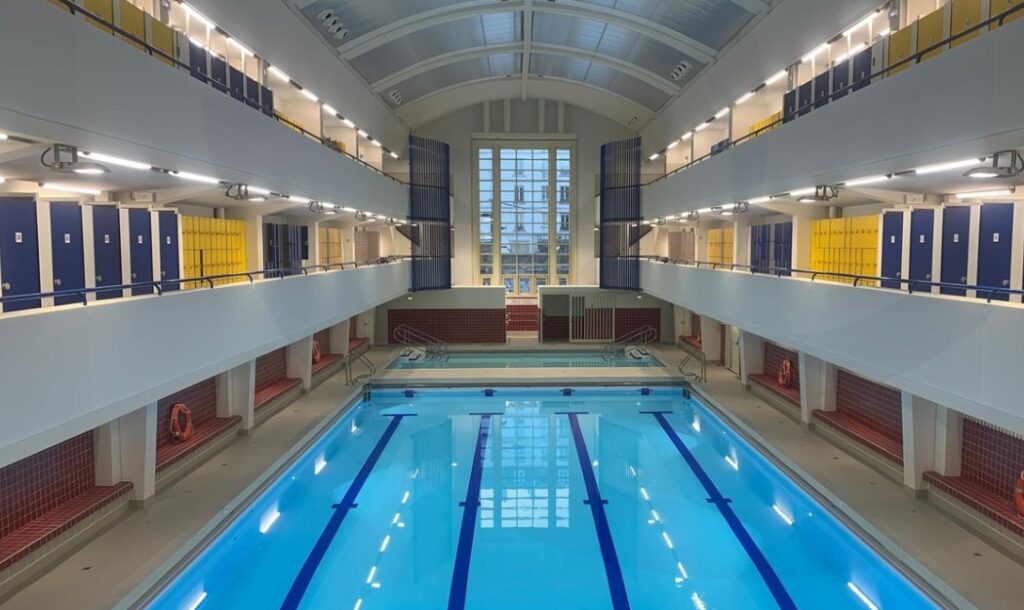 Het zwembad van Butte aux Cailles is zowel historisch als supermodern. Historisch omdat het binnenbad nu 100 jaar is en zijn Art Nouveau sfeer en stijl heeft behouden.: zie de X-post hier rechts. Het buitenbad hier is een paar jaar geleden geheel gerenoveerd en aangesloten op restwarmte van datacentra in de buurt en sindsdien het hele jaar door geopend! (Op Perraudin over het buitenbad >>>) Ook heel bijzonder is Piscine Amiraux uit 1923. Een zwembad dat is ingebouwd in een appartementen gebouw van de architect Henri Sauvage. Het is overigens gewoon een openbaar zwembad (Architectuur in Parijs>>>) Het legendarische Piscine Molitor stamt uit 1929 en was het decor van de eerste bikini. Nu een chique hotel met zwembad . (Op Parijsmagazine over Molitor >>>) Het Piscine Josephine Baker is een modern open lucht zwembad maar is spectaculair door de ligging… in de Seine. (Parijsmagazine over Piscine Josephine Baker >>>)