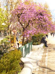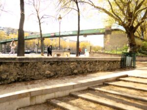 Wat is er nu leuker dan een zonnige zondagochtend flaneren langs het Canal Saint Martin tussen de joggers, andere sporters, gezinnen en loslopende wandelaars, niet veel vind ik. Het is 29 maart 2026 en ik was een week in Parijs, kou, regen en hagel, behalve nu op deze zondagochtend waarop de nieuwe burgemeester van Parijs, Emmanuel Grégoire van de l’Union de la Gauche et des Ecologiques, door 150 nieuwe gemeenteraadsleden is verkozen tot burgervader. De stad Parijs laat op internet weten, dat westelijk Parijs (6e, 7e, 8e, 15e, 16e en 17e arr.) zoals gewoonlijk behoudend rechts heeft gestemd en alle overige arrondissementen voornamelijk links. Het bijbehorende kaartje toont voor deze plekken een prachtig, kersenbloemachtig rose, zoals hier aan de kade. Ik word er lyrisch van, van de bloesem dus:
