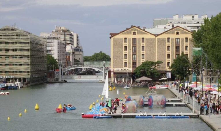 In het 19e arrondissement aan de kop van het Bassin de la Villette wordt de leuke oude brug